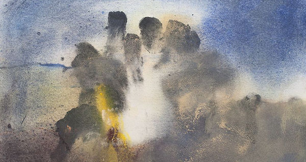 Mon cycle des lavis de Montagnes, en 2023, était une première étape de retour à la couleur. Ces lavis des Runes que j'aborde cette année m'amènent à réorienter ma gamme chromatique mais surtout à me re-questionner au niveau formel sur le comment intégrer l'idée de l'écrit dans un langage plastique, question dejà abordée en 2016 pour mes pièces en volume destinées à l'exposition ORIGIN à la grotte Chauvet 2 à Vallon Pont d'Arc. Dans ce cycle des Runes, j'essaie d'accompagner le passage à la couleur en intégrant une structure formelle robuste qui rappelle l'écrit et, sans se figer, finit par former paysage... Des paysages écrits... Les Runes sont indissociables pour moi du langage originel, du minéral et de la roche le tout baigné d'une lumière "fossile".