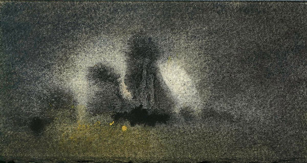 La création d’un livre d’artiste, livre objet unique, est un exercice très particulier. J’y ai passé plusieurs mois. Observer d’abord l’objet artisanal original, son papier fait de papiers recyclés. Puis décider d’un sujet, Les Runes, et démarrer une narration. Mon choix premier a été de créer des monotypes noir et blanc sur papier Whenzou. Puis de maroufler ce papier très fin sur le papier du livre original. Cette première trame graphique posée, se faisaient jour deux nécessités à mener de front : celle de la narration et celle de l’appropriation et du dépassement du support. Des récits visuels et plastiques devaient se développer au fil des pages, bien au-delà de la narration. Matières papier et lavis devaient donner vie à un récit sans mots, une jubilation des matières et des couleurs.